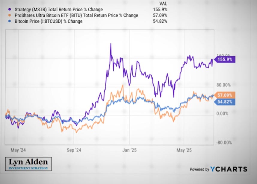 Leverage — These firms are borrowing to increase exposure. If Bitcoin moves 20%, their stock might move 40%