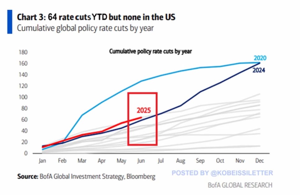 64 rate cuts globally in just the first half of 2025. That’s the most since 2020.