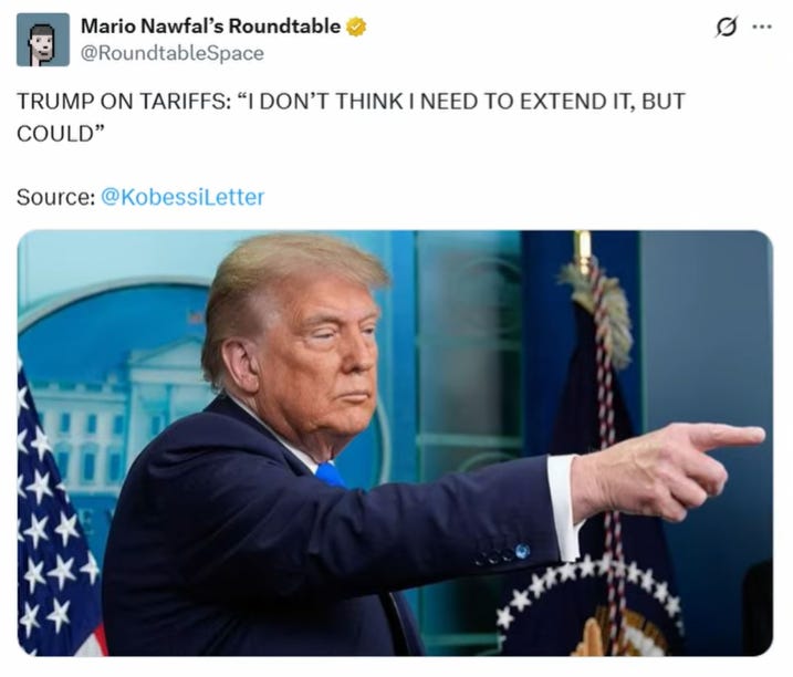 His quote? “I don’t think I need to extend [the tariff pause], but I could.”